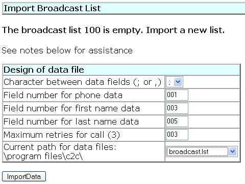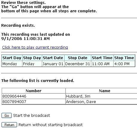 displays the phone numbers and optional names of the broadcast list. |