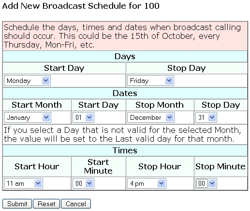 | Select "Schedule Broadcast" to define the times